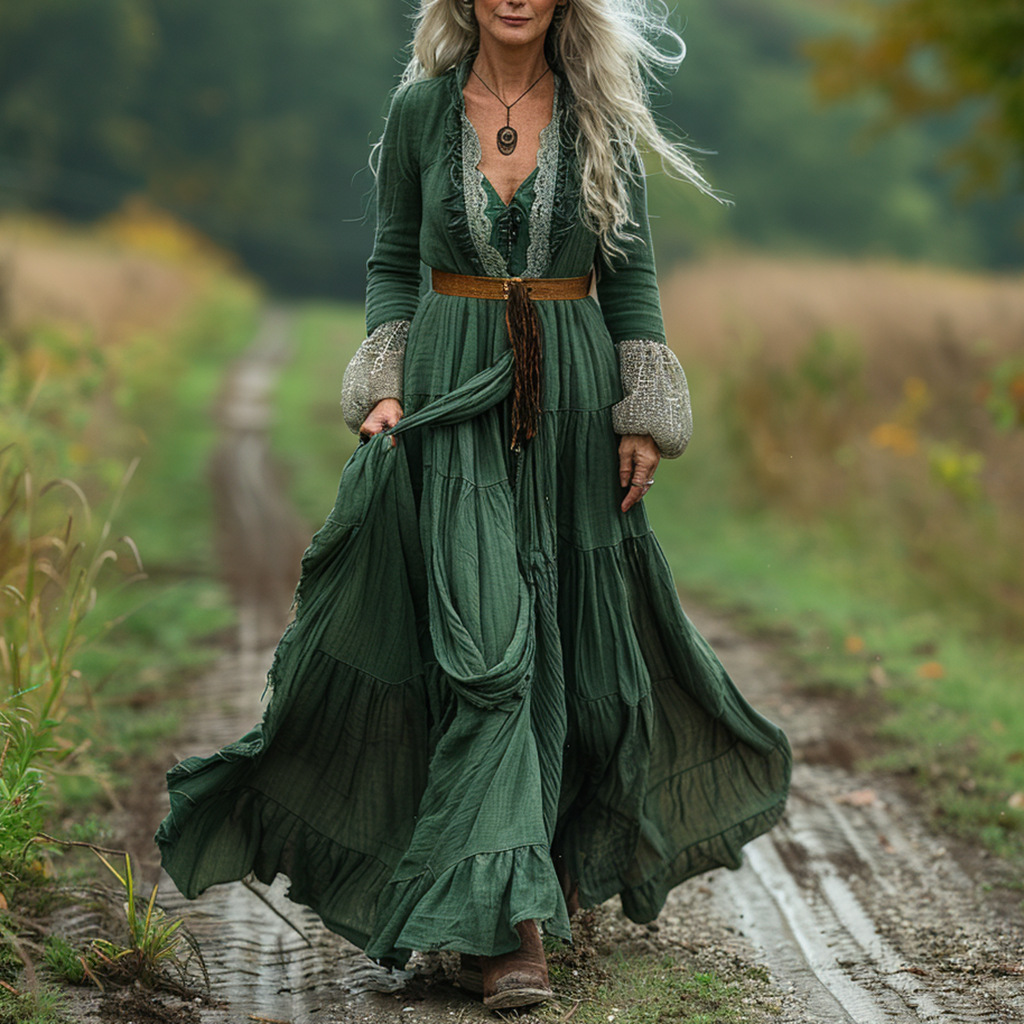 3D-printed Niche Womens Long-sleeve V-neck Dress