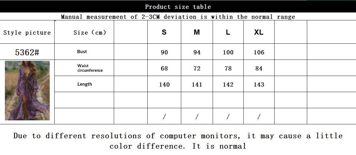 Printed V-neck Cinched-waist Bohemian Flowy Dress